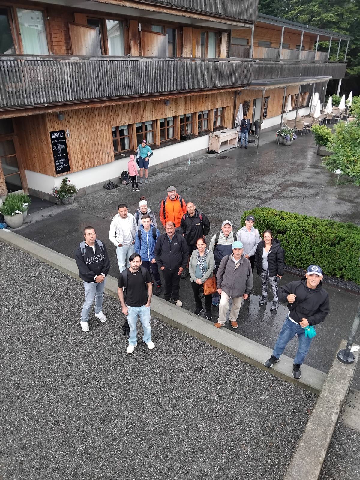 In den Sprachtreffs, die wöchentlich stattfinden, beschäftigen sich die Freiwilligen und Klient*innen mit der Vorbereitung auf die anschließenden Ausflüge, indem das Vokabular gelernt wird und Sprechanlässe geschaffen werden. An dem Dienstag im Juli waren 12 Klient*innen und 4 Begleiter*innen angemeldet und pünktlich um 7:45 Uhr am Treffpunkt. Vom Bahnhof in Dornbirn ging es mit dem Bus nach Schetteregg – und dann zu Fuß weiter.