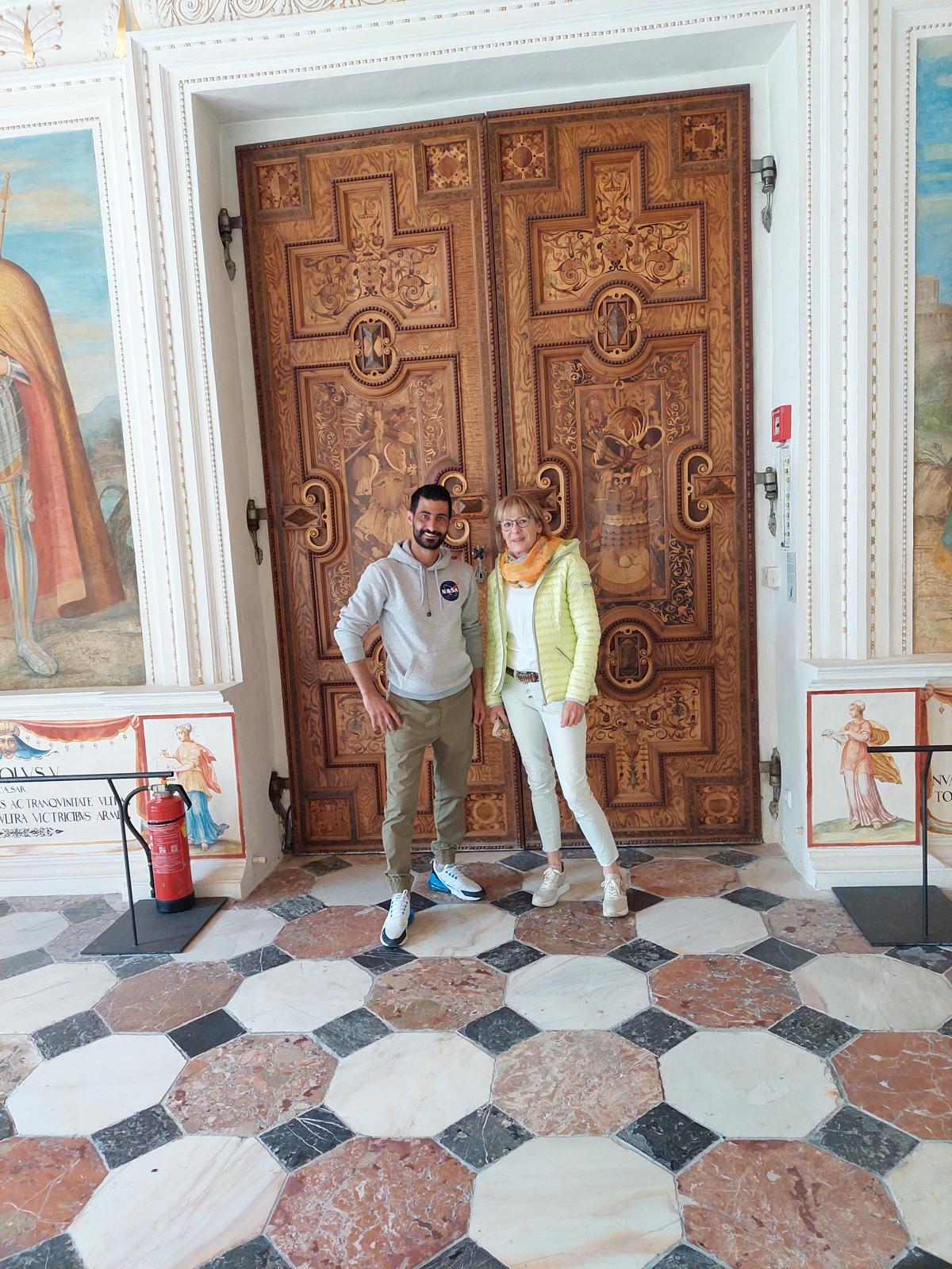 Schon nach sechs Monaten erhielt ich einen Termin beim BFA (Bundesamt für Fremden- und Asylwesen) zur Erstbefragung, welches wir „Interview“ nennen. In den ersten Wochen meines Aufenthalts in Volders habe ich Margit kennengelernt, die für eine Gruppe neuer Bewohner einen Deutschkurs organisierte. Neben klassischer Unterrichtszeit unternahmen wir auch einige Ausflüge in die Umgebung. Auf dem Foto sehen Sie Margit und mich im Schloss Ambras in Innsbruck.