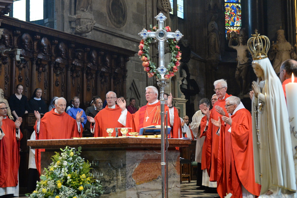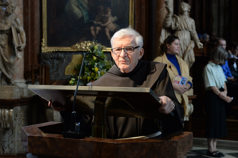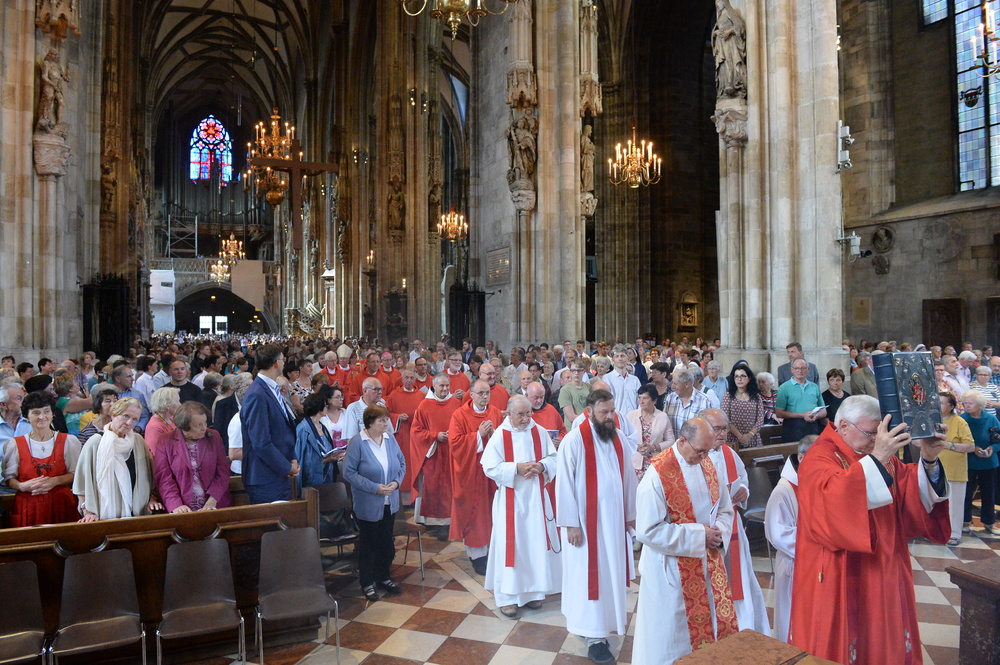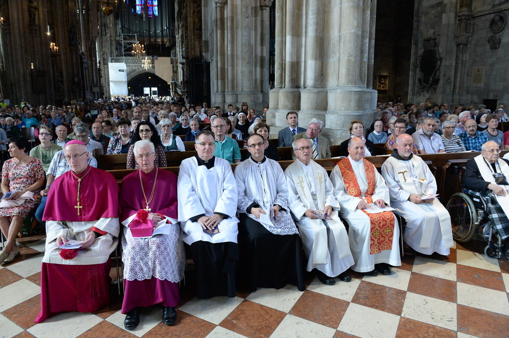 Am Beginn der Feier begrüßte der geistliche Leiter der Gebetsgemeinschaft, Pater Benno Mikocki, neben Erzbischof Lackner auch Weihbischof Franz Scharl, sowie die zahlreichen Gläubigen im vollen Stephansdom, unter ihnen den Präsidenten des Katholischen Laienrats, Wolfgang Rank und Bezirksvorsteher Markus Figl. Eigens willkommen geheißen wurden Gruppen der Gebetsgemeinschaft, die aus Tschechien, Deutschland, Polen und Ungarn zur Feier gekommen waren.