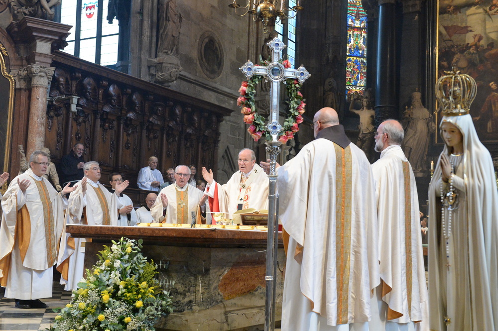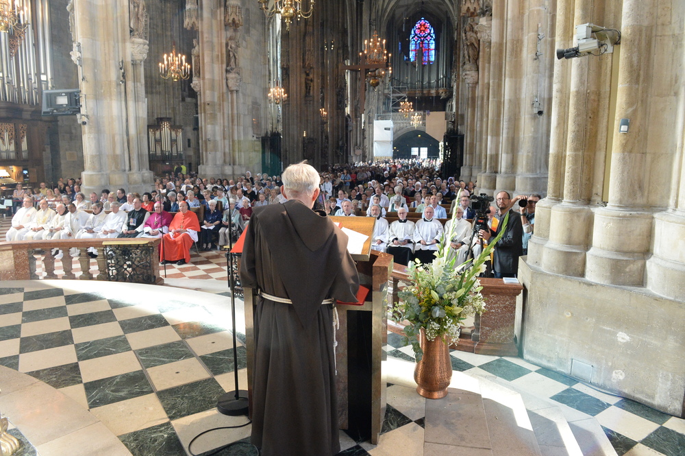 Am Beginn der Feier begrüßte der geistliche Leiter der Gebetsgemeinschaft, Pater Benno Mikocki, unter den zahlreichen Mitfeiernden neben den Kardinal auch den emeritieren Eisenstädter Bischof Paul Iby, Dompfarrer Anton Faber und die Nationalratsabgeordnete Gudrun Kugler.