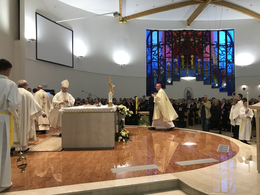 Die Delegation aus dem Burgenland besuchte in Zagreb auch die Pfarrgemeinde "Hl. Johannes XXIII.", in der vor allem Diaspora-Kroaten aus dem Kosovo leben. Bischof Zsifkovics weihte die neue Kirche ein.