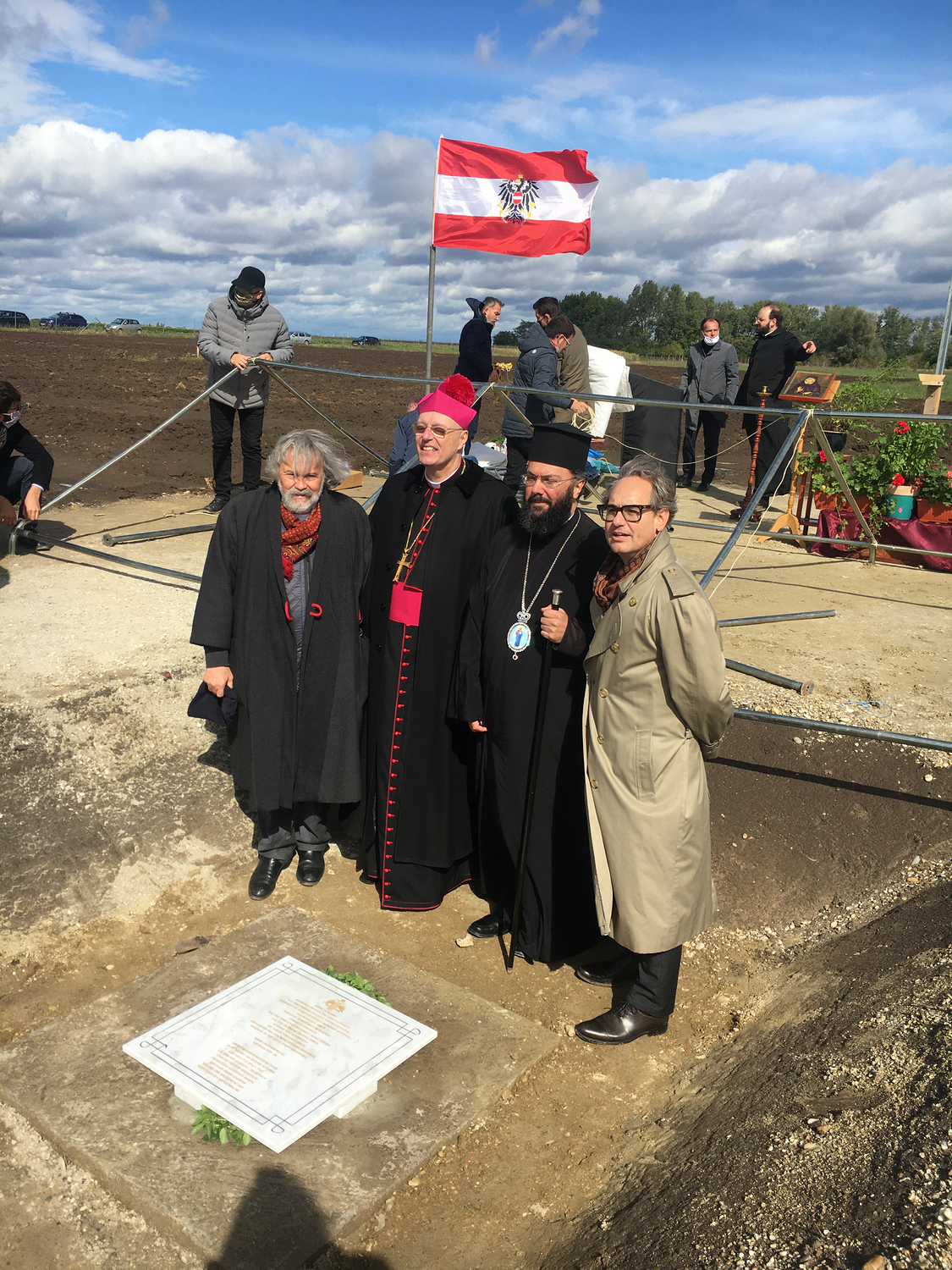 Der Grundstein für das erste orthodoxe Kloster in Österreich ist gelegt, nun können in St. Andrä/Zicksee im Burgenland die Bauarbeiten beginnen. Metropolit Arsenios (Kardamakis), Bischof Ägidius Zsifkovics, Landeshauptmann Hans Peter Doskozil, der St. Andräer Bürgermeister Andreas Sattler und Abt Paisios Jung nahmen am Samstagmittag die feierliche Grundsteinlegung vor. Eigentlich hätte auch der Ökumenische Patriarch Bartholomaios nach St. Andrä kommen sollen, musste seinen Besuch aber kurzfristig - coronabedingt und aus politischen Gründen - absagen. Vor der Grundsteinlegung stand Metropolit Arsenios einem kurzen Gottesdienst am Bauplatz vor.
