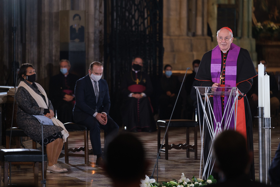 "Wir bitten um den Segen und Frieden für die Verstorbenen, Verwundeten, Trauernden und das ganze Land", so Kardinal Schönborn eingangs. Die bewährte Einheit und der Zusammenhalt der Religionen in Österreich dürfe nicht zerstört werden, appellierte der Kardinal. Friede sei nie ein fertiges Produkt, sondern ein Netzwerk vieler einzelner Aufmerksamkeiten, von entsprechenden Umgangsstilen, etwa auch vom Verzicht auf Hasspostings oder dem Schüren von Vorurteilen.