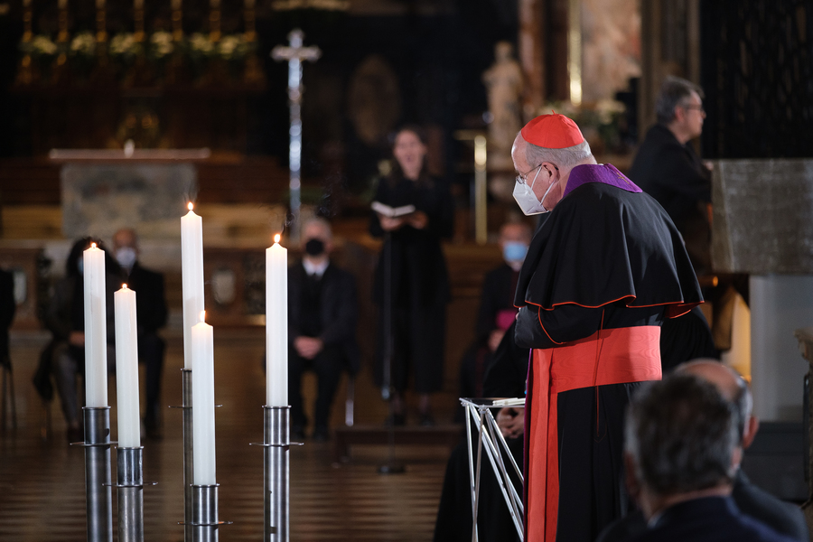Mit Fürbitten, dem Anzünden von Weihrauch und einem Segenslied wurde der schlichte Gottesdienst beendet. Die Teilnehmer saßen in der Mitte des Domes. Vor ihnen auf dem Boden lag ein Gesteck von weißen Blumen, daneben standen die Kerzen für die Verstorbenen.