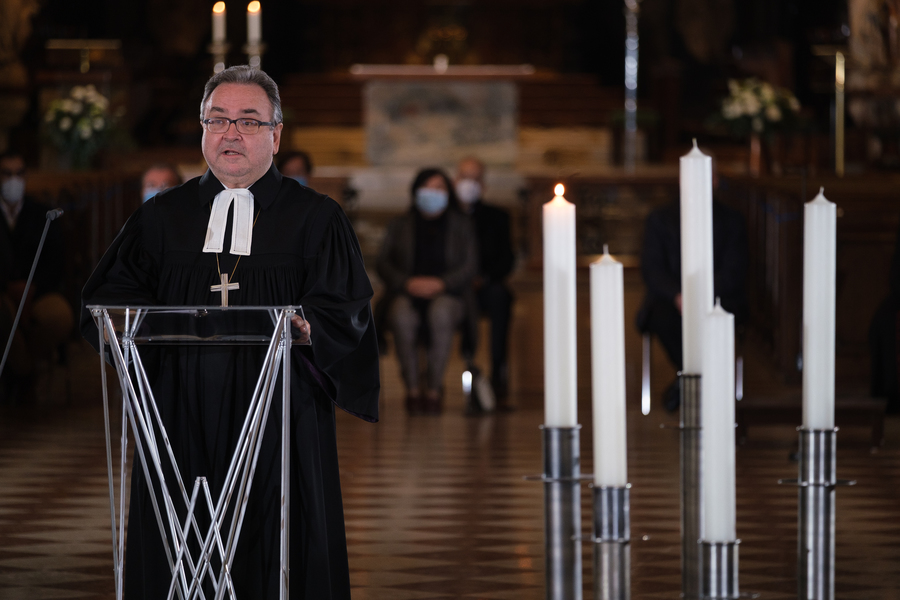 In schweren Stunden sei das Schweigen eine Tröstung und das Gebet eine Zuflucht. Mit diesen Worten leitete Metropolit Arsenios sein Gebet ein. Wenn uns die Worte fehlen, dann können wir uns an die Worte halten, die uns von unseren Vorvätern überliefert wurden, sagte Bischof Chalupka. Der evangelische Bischof betete einen biblischen Psalm.