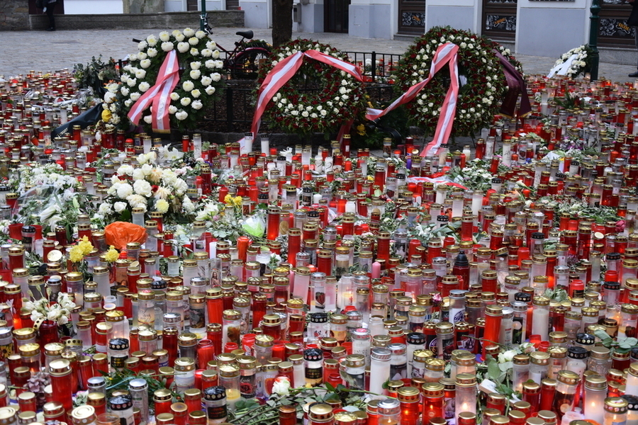 Wien: Tausende Kerzen, Blumen und Friedensbotschaften an Tatorten