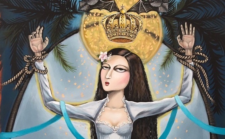 So stehe die Palme für die Heilige selbst, aber auch für die Reise und den Karibikstrand in Tulum, wo Otberg unter Palmen und einem "paradiesischen Ambiente die Horrormeldungen aus Europa verfolgte". Die über der Krone schwebenden Fledermäuse verwiesen hingegen auf Missernte und Raubbau an der Natur, so die atheistisch aufgewachsene Künstlerin. Die in Wien lebende Otberg bezeichne sich selbst "als einen gläubigen Menschen", denn sonst könnte sie solche Bilder auch nicht malen.