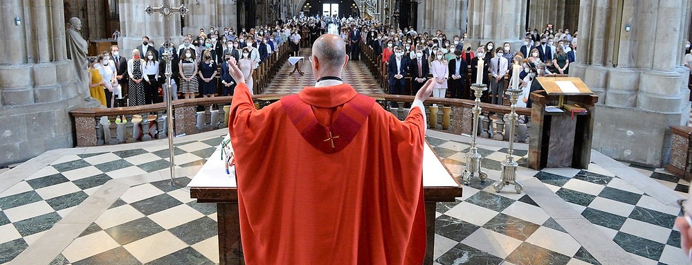 Ab Donnerstag, 1. Juli, kommt es bei öffentlichen Gottesdiensten zu weiteren Erleichterungen bei den Corona-Schutzmaßnahmen. Die Regelungen dafür hat die Bischofskonferenz am Mittwoch veröffentlicht. Galt zuletzt noch ein Mindestabstand von einem Meter, so entfällt dieser jetzt gänzlich. Statt der FFP2-Maske ist künftig ein Mund-Nasen-Schutz (MNS) in geschlossenen Kirchenräumen verpflichtend. Grund dafür ist, dass bei Gottesdiensten die "3G-Regel" grundsätzlich nicht gilt, es sei denn, sie wird vorab bei "Feiern aus einmaligem Anlass" wie Taufe, Erstkommunion, Firmung oder Trauung eigens vereinbart. Beim Gemeindegesang gibt es keine Einschränkungen mehr. Die neue Rahmenordnung gilt österreichweit für den Bereich der Katholischen Kirche.