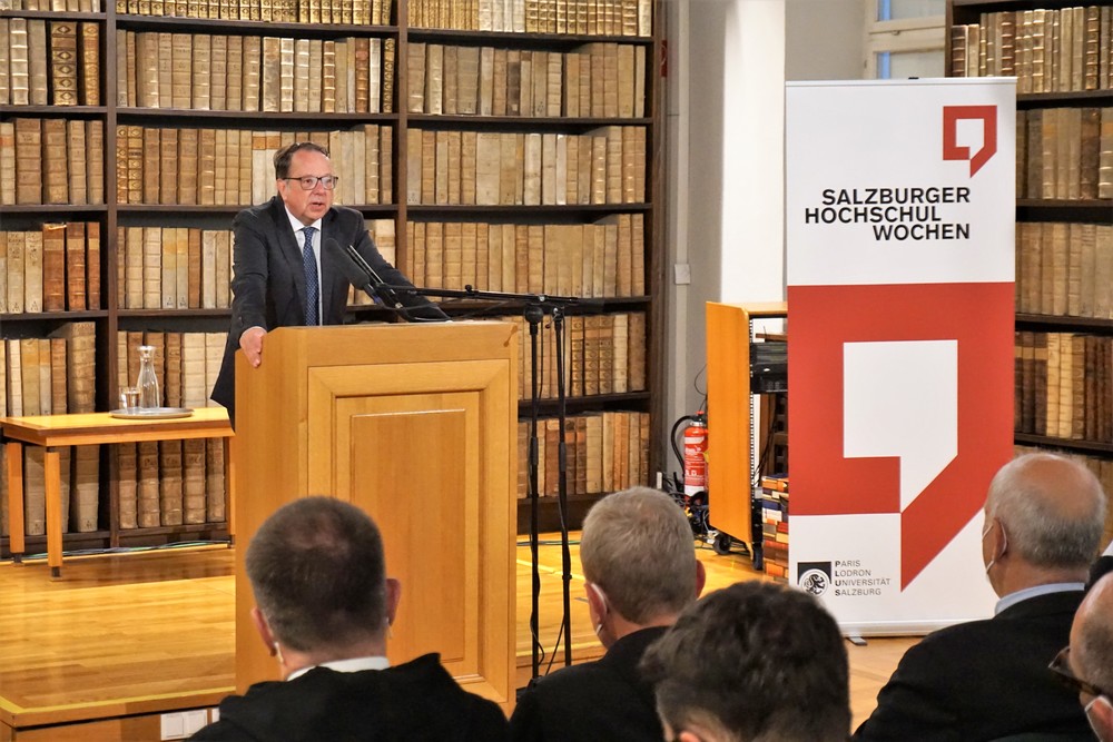 Worte der Gratulation zum 90-Jahr-Jubiläum und der Wertschätzung der "Salzburger Hochschulwochen" kamen zudem von Landtagspräsidentin Brigitta Pallauf und dem Rektor der Universität Salzburg, Hendrik Lehnert. "Bis heute sind die Hochschulwochen ein sehr lebendiges Format" und ein "Hotspot reflexiver Katholizität", der sich durch einen "zeitgemäßen digitalen Relaunch" auch in Krisenzeiten wie der Corona-Pandemie bewährt habe.