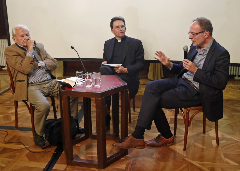 Im Anschluss an den Vortrag diskutierten der Kärntner Autor Alois Brandstetter und der Theologe und zugleich Initiator der Wiener Poetikdozentur, Jan-Heiner Tück, unter der Leitung des Geistlichen Assistenten des KAV, Richard Pirker, über das Verhältnis von Literatur und Religion. Dabei unterstrich Tück, dass eine wesentliche Triebfeder der Literatur darin bestehe, das Bewusstsein für das Verlorene, dem Vergessen Ausgesetzte zu bewahren. Insofern drücke sich in der Literatur letztlich die "Sehnsucht nach einer Instanz aus, die den Täter nicht über das Opfer triumphieren lässt".