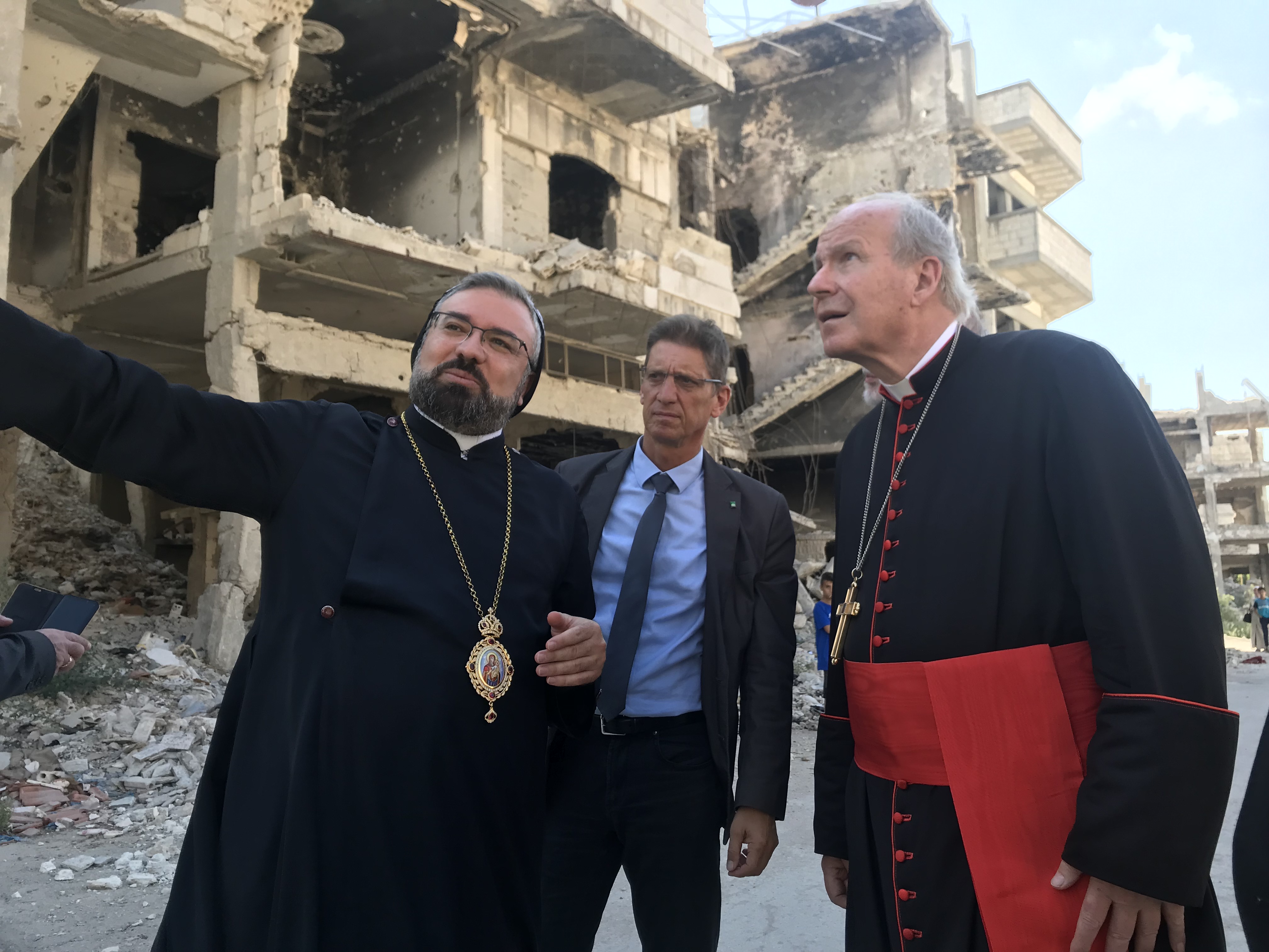 Bei einem Lokalaugenschein konnte sich Schönborn zudem ein persönliches Bild von den Kriegsschäden machen. Ganze Stadtteile von Homs liegen nach wie vor in Schutt und Trümmern.