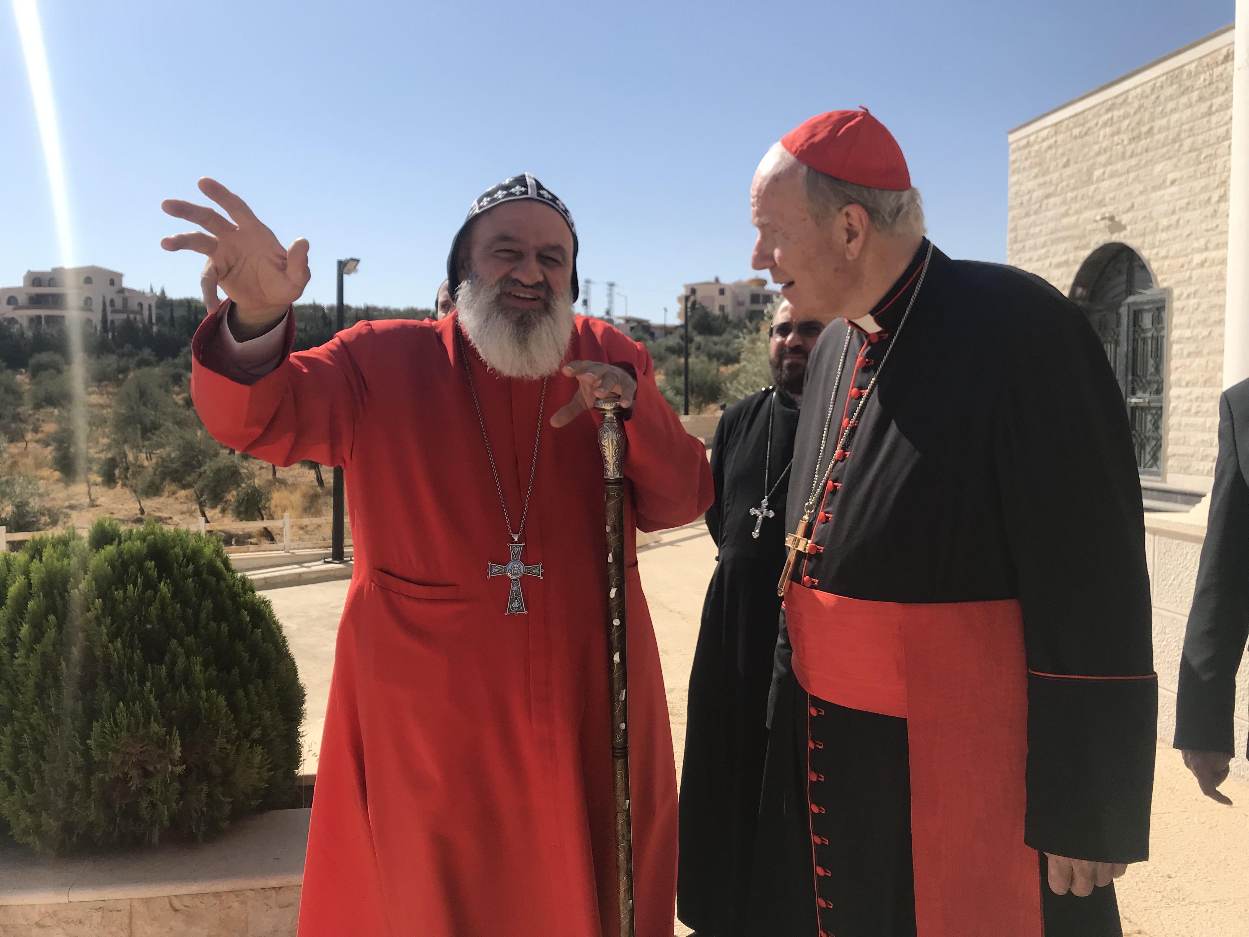 Patriarch Aphrem dankt Kardinal Schönborn für seinen Besuch und bittet ihn zugleich, sich für ein Ende der westlichen Sanktionen gegen Syrien einzusetzen. Die Wirtschaftssanktionen würden die einfache Bevölkerung in tiefstes Elend stürzen.