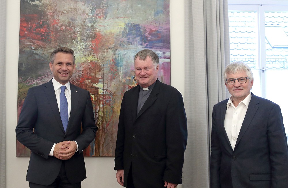 Der Landerat betonte bei seinem Antrittsbesuch die enge Verbindung zwischen dem Land Oberösterreich und den Religionsgemeinschaften sowie seinen christlich-sozialen Zugang in der Sozialpolitik. Er bedanke sich für die enge Zusammenarbeit und für die große Verantwortung, die die Kirche im Sozialbereich übernimmt, so der Landesrat. Ebenso hob er deren Beitrag im gemeinsamen Einsatz gegen extremistische Strömungen hervor und stellte fest: "Die Religionsgemeinschaften sind in allen diesen Bereichen einer der größten Partner für das Land."