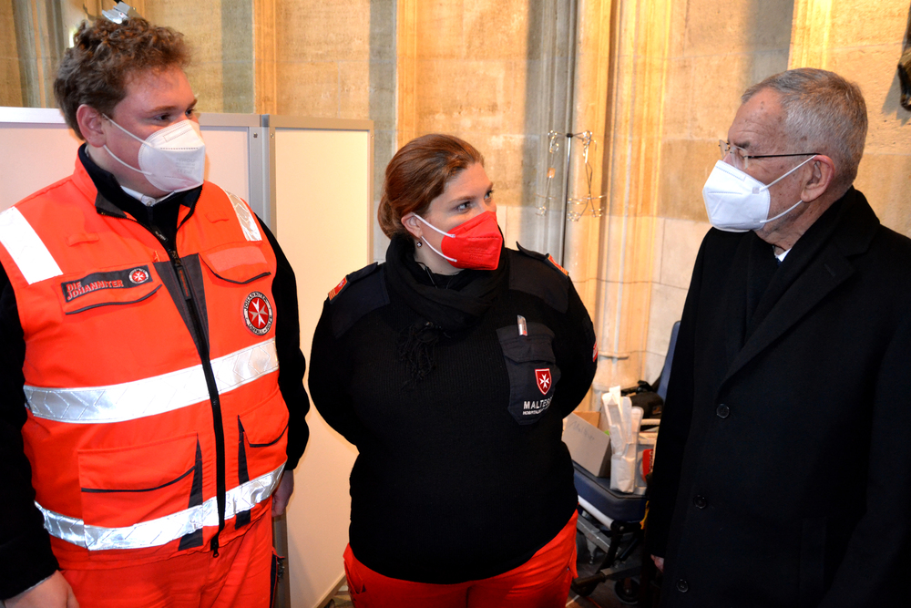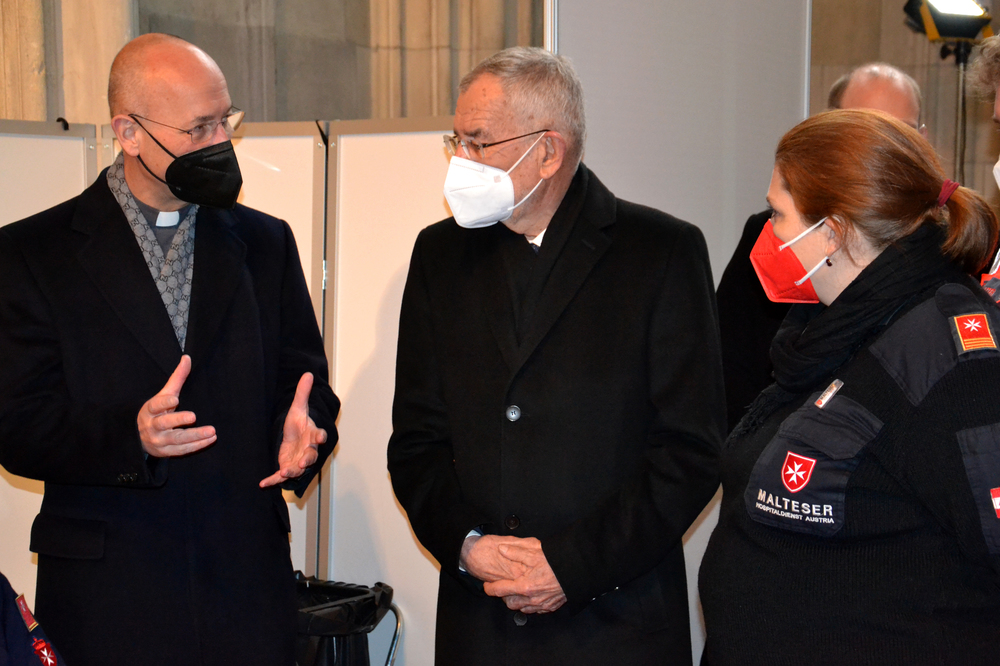 Dompfarrer Toni Faber bezeichnete den Besuch Van der Bellens und Schönborns in der Impfstraße in der Barbarakapelle als Zeichen "ganz großer Wertschätzung" für die Arbeit, die dort geleistet wird. Schon mehr als 26.000 Impfwillige hätten dort die erste, zweite oder dritte Impfung erhalten.