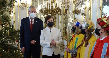 In den Kostümen von Caspar, Melchior und Balthasar sowie des Sterns steckten diesmal Kinder im Alter von 5 bis 9 Jahren aus der Pfarre Franz von Sales in Wien-Döbling. Sie durften heuer zwar im Gegensatz zum Vorjahr wieder live singen, Corona-bedingt wurden dabei aber Masken getragen. Anschließend überbrachten die Sternsinger die Friedensbotschaft sowie die Segenswünsche für das Jahr 2022.