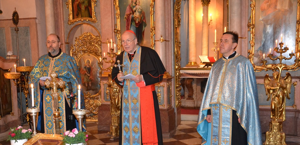 Erst am Aschermittwoch hatte der Erzbischof dies in der griechisch-katholischen Pfarre St. Barbara umgesetzt, als er mit ukrainischen Gläubigen für den Frieden und ein Ende des Krieges betete. Auf Wunsch des Papstes wurde der Aschermittwoch heuer auf weltweit als Tag des Fastens und des Gebets für die Ukraine begangen. Am Donnerstag richtete Schönborn in seiner Funktion als Ordinarius für die katholischen Ostkirchen in Österreich ein Spendenkonto für die Ukraine ein (Konto Ostkirchenordinariat, IBAN: AT78 1919 0001 3602 6950, Zahlungsreferenz: 3722401205 Ukraine-Hilfe).