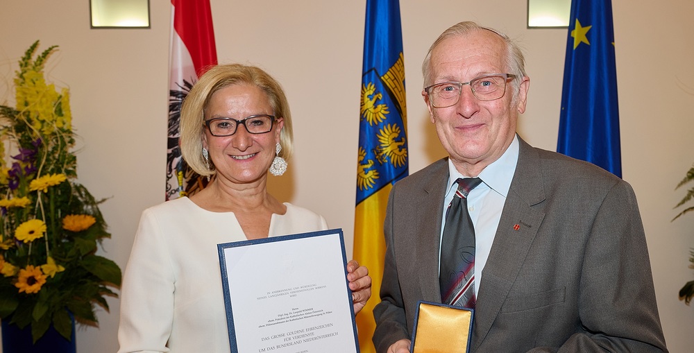 Der frühere, langjährige St. Pöltner Diözesanobmann der Katholischen Männerbewegung (KMB), Leopold Wimmer, wurde mit dem "Großen Goldenen Ehrenzeichen für Verdienste um das Bundesland Niederösterreich" ausgezeichnet. Das berichtete die Diözese St. Pölten auf ihrer Webseite (Montag). Wimmer war 30 Jahre lang, von 1990 bis 2020, Diözesanobmann und von 2008 bis 2018 Vorsitzender der Katholischen Männerbewegung Österreich, der größten Männerorganisation im Land. Neben vielen anderen Funktionen wurde er 2018 bis 2021 auch für eine Periode zum Präsidenten der Katholischen Aktion Österreich (KAÖ) gewählt. Die feierliche Übergabe des Ehrenzeichens nahm Landeshauptfrau Johanna Mikl-Leitner persönlich vor.