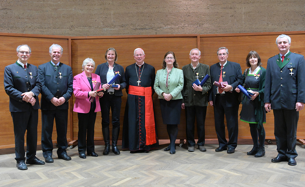 Mit sieben Rupert-und-Virgil-Orden in Silber und zwei in Gold hat der Salzburger Erzbischof Franz Lackner verdiente ehrenamtliche Mitarbeiterinnen und Mitarbeiter ausgezeichnet. Die hohen diözesanen Orden würdigen das ehrenamtliche Engagement der Mitarbeiter. "Nach der Zeit der Pandemie gilt eine vertiefte Nachdenklichkeit. Das heißt auch nachzudenken, wem wir danken wollen und wem es in unserem Leben zu danken gilt", sagte Lackner laut einer Aussendung der Erzdiözese bei der Verleihung. "Auf Ihren Einsatz, Ihre Professionalität und menschliche Größe können Menschen und Kirche zählen: Kirche lebt von jenen, die mehr tun als ihre Pflicht", erklärte zudem Laudatorin Ordinariatskanzlerin Elisabeth Kandler-Mayr.