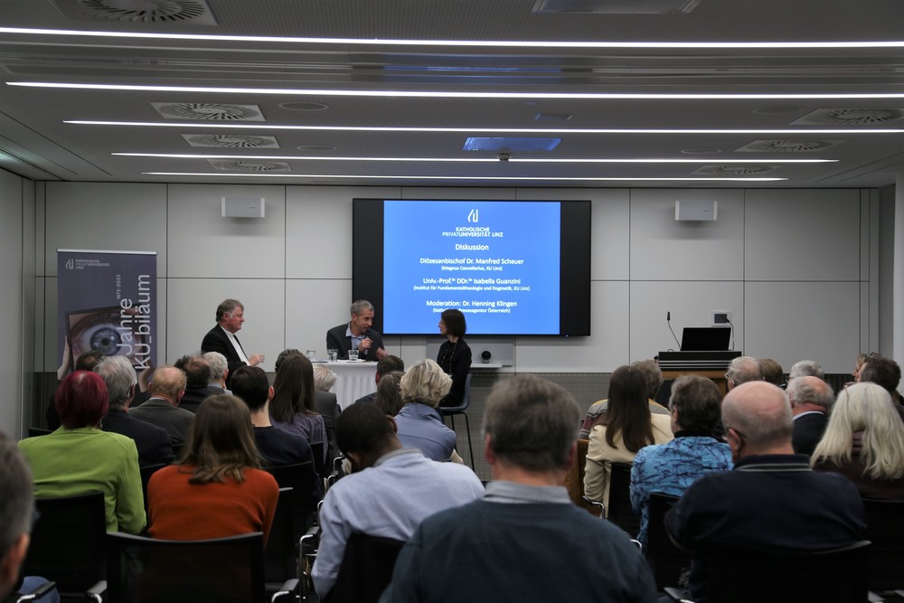 Der Vortrag Guanzinis fand im Rahmen einer Veranstaltung zum 350-Jahr-Jubiläum der Katholischen Privat-Universität Linz (KU) statt und stand unter dem Titel "Nicht ohne die Anderen. 'Katholizität' als symbolische Ressource für eine plurale Öffentlichkeit". Im Anschluss an den Vortrag diskutierte die Theologin ihre Thesen in einem Podiumsgespräch mit Bischof Manfred Scheuer.