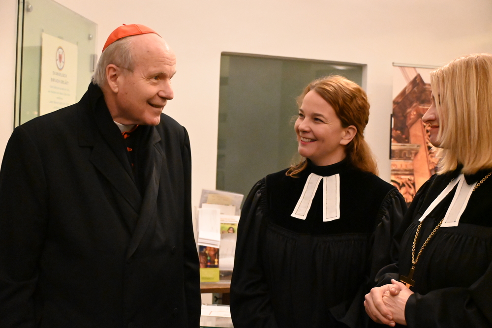 Zu den grundlegenden Voraussetzungen des Menschseins gehöre, dass "alle von einer Frau geboren wurden und einen Vater haben", hielt der Kardinal fest. Zudem teilten die abrahamitischen Religionen die fundamentale Überzeugung: "Wir haben alle ausnahmslos Ansehen in den Augen Gottes." Mit dieser Aussage nahm der Wiener Erzbischof auch Bezug auf die "bewegende Predigt und den berührenden ökumenischen Gottesdienst", der zuvor in der evangelisch-lutherischen Stadtkirche stattgefunden hatte. Vorsteherinnen der Feier waren die evangelische Oberkirchenrätin Ingrid Bachler und die evangelischen Pfarrerinnen Eva Harasta sowie Julia Schnizlein, die die Predigt hielt.