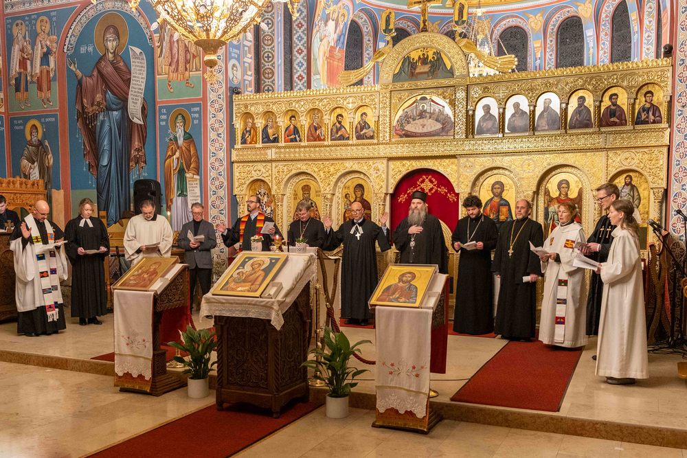 Nemanja Micic, Diakon der gastgebenden Serbisch-orthodoxen Kirche, erinnerte in seiner Begrüßung daran, dass die Kirche im Linzer Hafen ursprünglich die Pfarrkirche der katholischen Pfarre St. Severin war und 1991 an die serbisch-orthodoxe Gemeinde übergeben wurde. Bischof Andrej Cilerdzic eröffnete die ökumenische Feier.