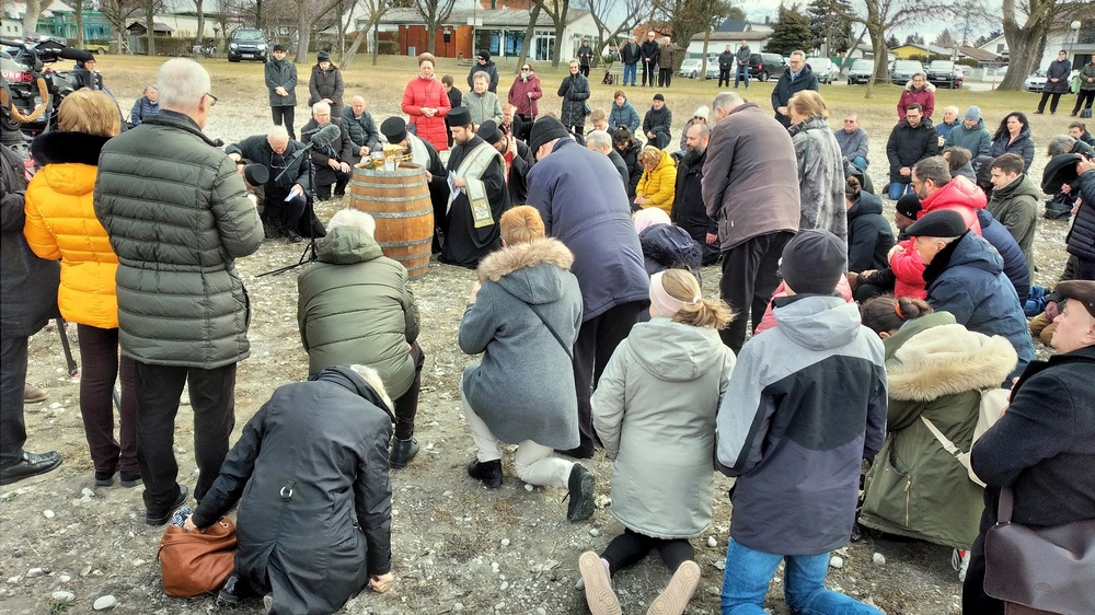 Den Auftakt der Feierlichkeiten, die heuer zum sechsten Mal und erstmals wieder nach einer zweijährigen, pandemiebedingten Pause stattfand, bildete eine Göttliche Liturgie in der Kapelle des Klosters in St. Andrä/Zicksee. Den emotionalen Höhepunkt, zu der sich nicht nur zahlreiche Vertreter der orthodoxen und der katholischen Kirche, sondern auch von Medien und Politik versammelt hatten, bildete schließlich die Bitte von Metropolit Arsenios an die versammelten Gläubigen, sich für ein Gebet um ein Ende der Trockenheit auf dem ausgetrockneten Boden des Sees niederzuknien. Gleichzeitig forderte er dazu auf, bis Ostern täglich um 20.00 Uhr für ein Ende der Dürre zu beten.