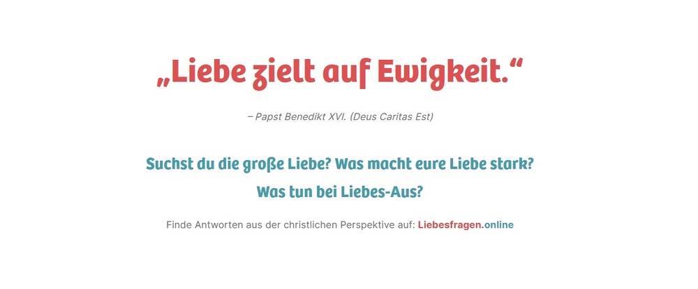 Das neue Online-Portal "liebesfragen" will Jugendlichen und Erwachsenen christliche Orientierung in Fragen zu Beziehung, Liebe und Sexualität bieten. Seit wenigen Tagen online, gibt es zu den Themenbereichen zahlreiche Texte, eine umfangreiche Sammlung von Links zu Blogs, Podcasts sowie weiterführenden Informationen und Organisationen.