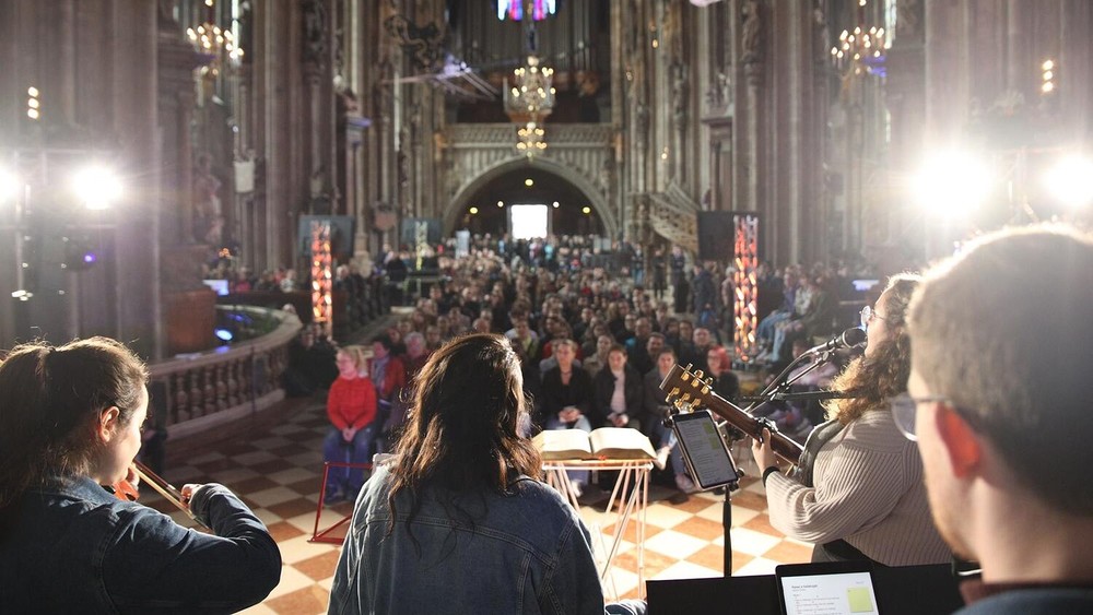 Begleitet wurde der Gottesdienst von einer Worship-Band begleitet, als Abschluss wurden die Jugendlichen von Vertreterinnen und Vertretern der katholischen und evangelischen Kirche gesegnet. Anschließend konnten die Besucherinnen und Besucher die Kletterwand selbst besteigen, bevor auf dem Stephansplatz eine "Chillout-Zone" mit Musik und Talkgästen wie Pfarrerin Schnitzlein und Dompfarrer Faber wartete.
