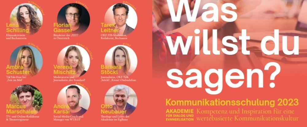Die "Akademie für Dialog und Evangelisation" startet am 28. April eine "Kommunikationsschulung für Visionär:innen, Aktivist:innen und gesellschaftlich Engagierte". Zu den prominenten Referenten gehören etwa die ORF-Journalistinnen Barbara Stöckl und Claudia Reiterer, Klimaaktivistin Lena Schilling oder auch der Innsbrucker Bischof Hermann Glettler. Zielgruppe sind kirchliche Organisationen, NGOs und "Netzwerker", wie es in einer Aussendung heißt. Der Medienlehrgang startet am 28. April.