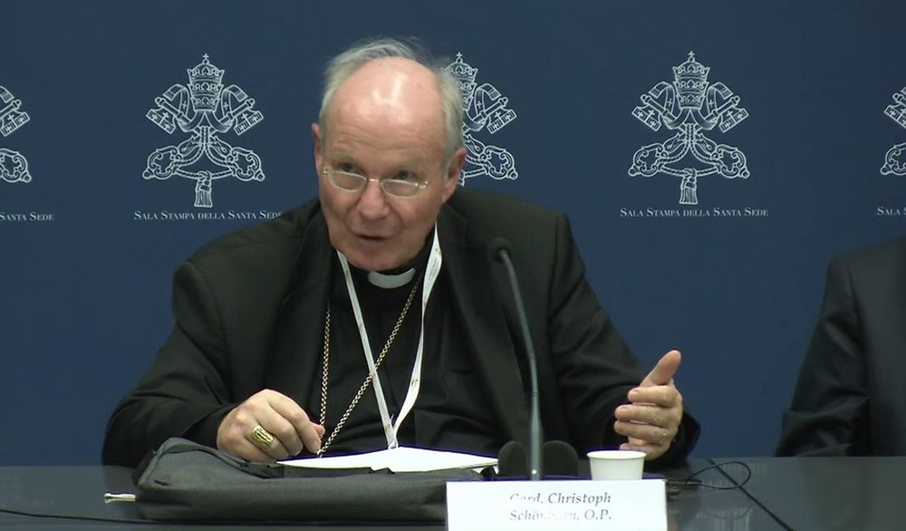 Auf Anfrage eines Journalisten erklärte Schönborn, dass eine etwaige Änderung der offiziellen Kirchenlehre über gelebte Homosexualität allein Sache des Papstes wäre. Bisher habe es erst eine Änderung am gültigen Katechismus von 1992 gegeben. Papst Franziskus habe 2018 die Ächtung der Todesstrafe in das Lehrbuch der katholischen Kirche eingefügt. Ob es weitere Änderungen geben werde, hänge allein am Papst, der den Katechismus verkünde und in Kraft setze, so der Kardinal, der vor mehr als 30 Jahren an der Formulierung des geltenden Katechismus beteiligt war.