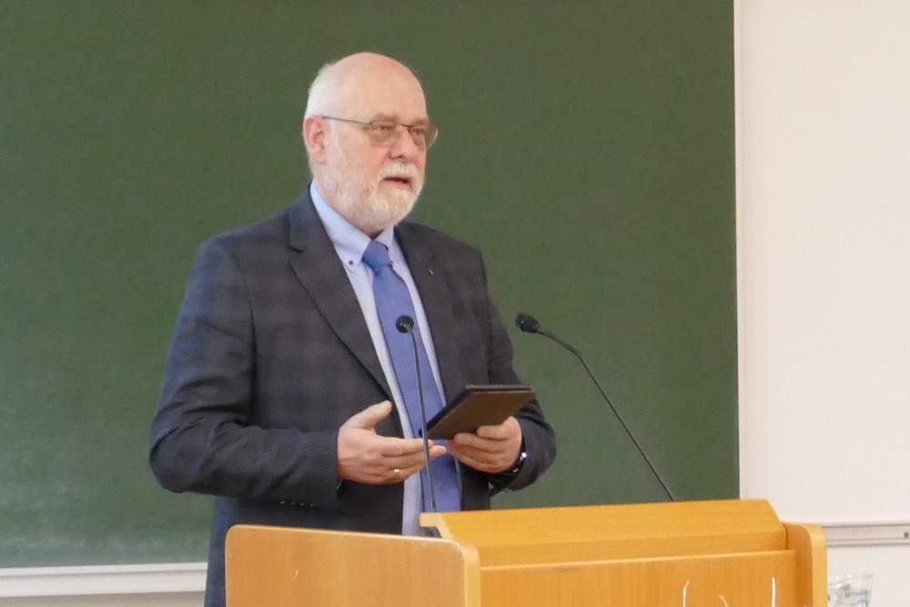 Der Angriff Russlands bedeute einen Bruch des Gewaltverbots und bedinge ein konditioniertes Recht der Ukraine auf Selbstverteidigung, erläuterte Heinz-Gerhard Justenhoven, Direktor des Instituts für Theologie und Frieden in Hamburg, in einem weiteren Vortrag beim "Dies Academicus". Das Recht auf Gegenwehr müsse dabei durch Angemessenheit, Verhältnismäßigkeit und Erfolgswahrscheinlichkeit begrenzt werden. Dies schließe auch "uns in Westeuropa ein" durch die Pflicht, der Ukraine dabei - auch mit militärischer Ausrüstung - Hilfe zu leisten, sofern ihr selbst die Mittel fehlen, stellte Justenhoven klar.