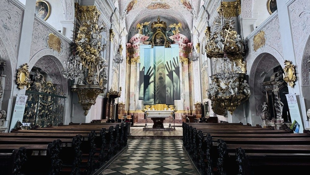 Fastentuch-Installation "Orakel" im Klagenfurter Dom