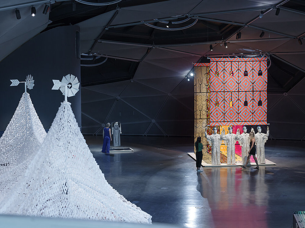 Die ihr gewidmete Einzelausstellung setzt sich mit dem Begriff des "sicheren Hafens" auseinander und richtet den Blick auf soziale, ethische und ökologische Nachhaltigkeit. Zu sehen ist etwa identitätsstiftende Kleidung - in Form von Uniformen - sowie ein individualisierbares Schutzzelt für Geflohene hin zum gemeinsamen Er- und Verarbeiten recycelter Textilien. Die Beispiele sollen die Suche nach Bedingungen und Möglichkeiten von Übereinkunft, nach Zeichen und Orten des menschlichen Zusammenlebens symbolisieren, hieß es.