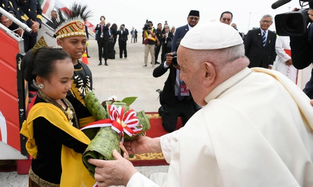 Papst Franziskus ist am Dienstag um 11.16 Uhr (Ortszeit; 6.16 Uhr mitteleuropäischer Zeit) in Jakarta gelandet. Indonesiens Hauptstadt ist die erste Station seiner Asien-Pazifik-Reise. Der Papst-Flieger der italienischen Fluggesellschaft ITA war am Vorabend vom römischen Flughafen Fiumicino aus gestartet. Nach dem rund 13-stündigen Flug wurde das katholische Kirchenoberhaupt am Airport Soekarno-Hatta mit militärischen Ehren begrüßt. Neben dem indonesischen Minister für religiöse Angelegenheiten, Yaqut Cholil Qoumas, und Jakartas Erzbischof Kardinal Ignatius Suharyo hießen auch zwei Kinder in Tracht und weitere Würdenträger den Gast aus Rom willkommen.