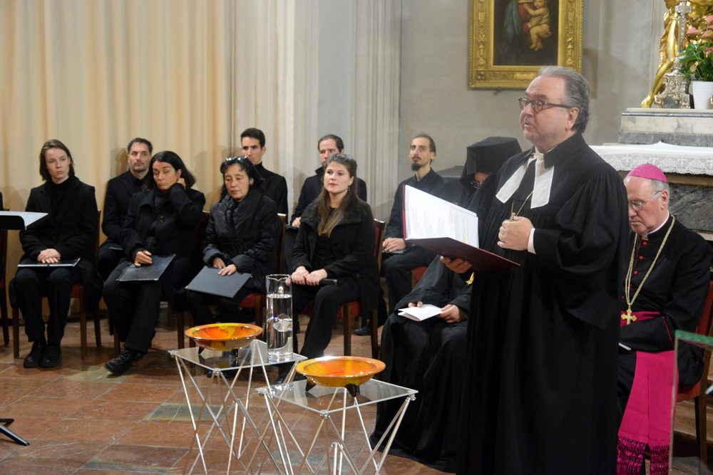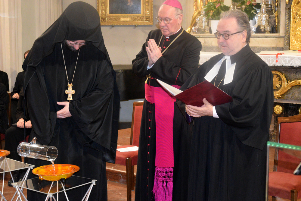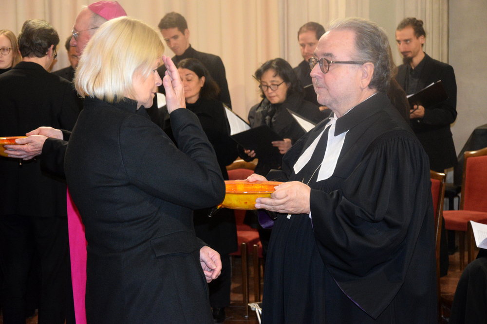 Im Rahmen eines Taufgedächtnisses konnten sich die Gottesdienst-Teilnehmenden von den Geistlichen ein Wort der Erinnerung an die eigene Taufe zusagen lassen und sich in diesem Sinne mit Wasser bekreuzigen. In den Fürbitten wurde u.a. für den Frieden in der Welt, für Österreich und für die Arbeit des Nationalrates gebetet.