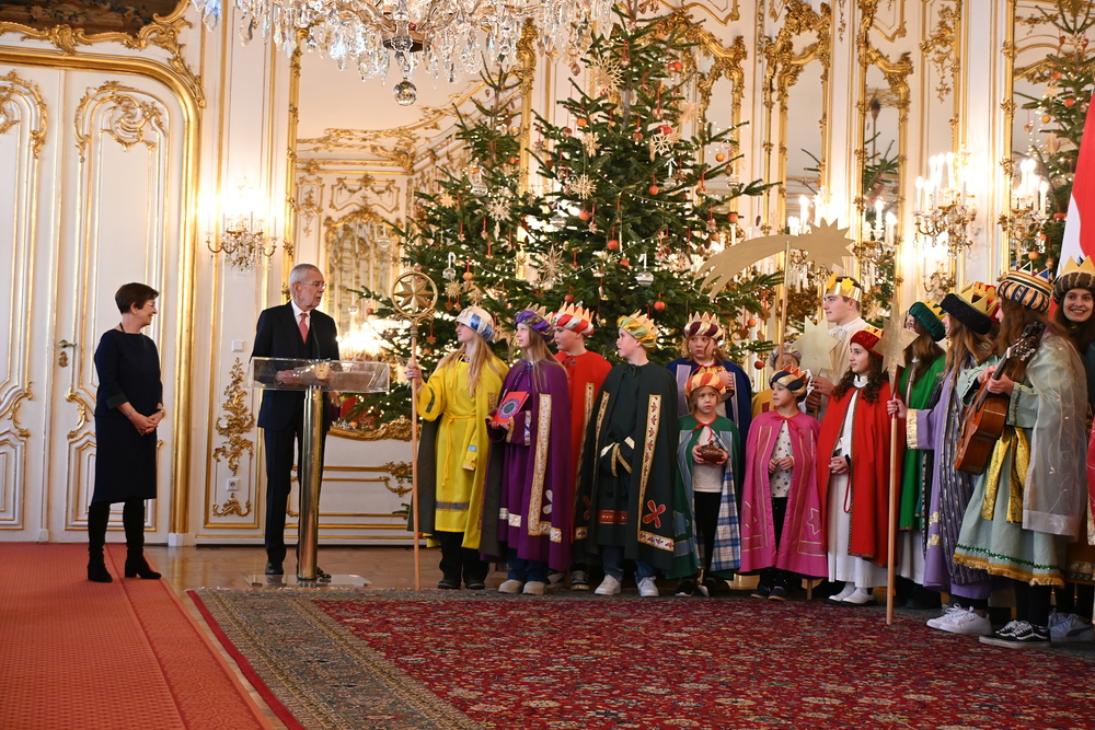 Anerkennung zollte der Bundespräsident auch für den mit viel Mühen verbundenen Einsatz der beteiligten Kinder. "Ihr geht herum, klopft, singt und bittet um Spenden, egal ob es regnet, schneit, die Sonne scheint oder saukalt ist." Vielen Menschen bereite der Sternsinger-Besuch eine große Freude, so Van der Bellen, der zudem auf den Umstand hinwies, dass sich die Aktion an die gesamte österreichische Gesellschaft richte. "Ihr bringt allen Menschen eure Friedensbotschaft, die heute so wichtig ist, und macht dabei keinen Unterschied nach Glauben, Herkunft, Hautfarbe oder sozialem Status." Sternsinger seien somit Vorbilder für ein gutes Miteinander in der Gesellschaft.