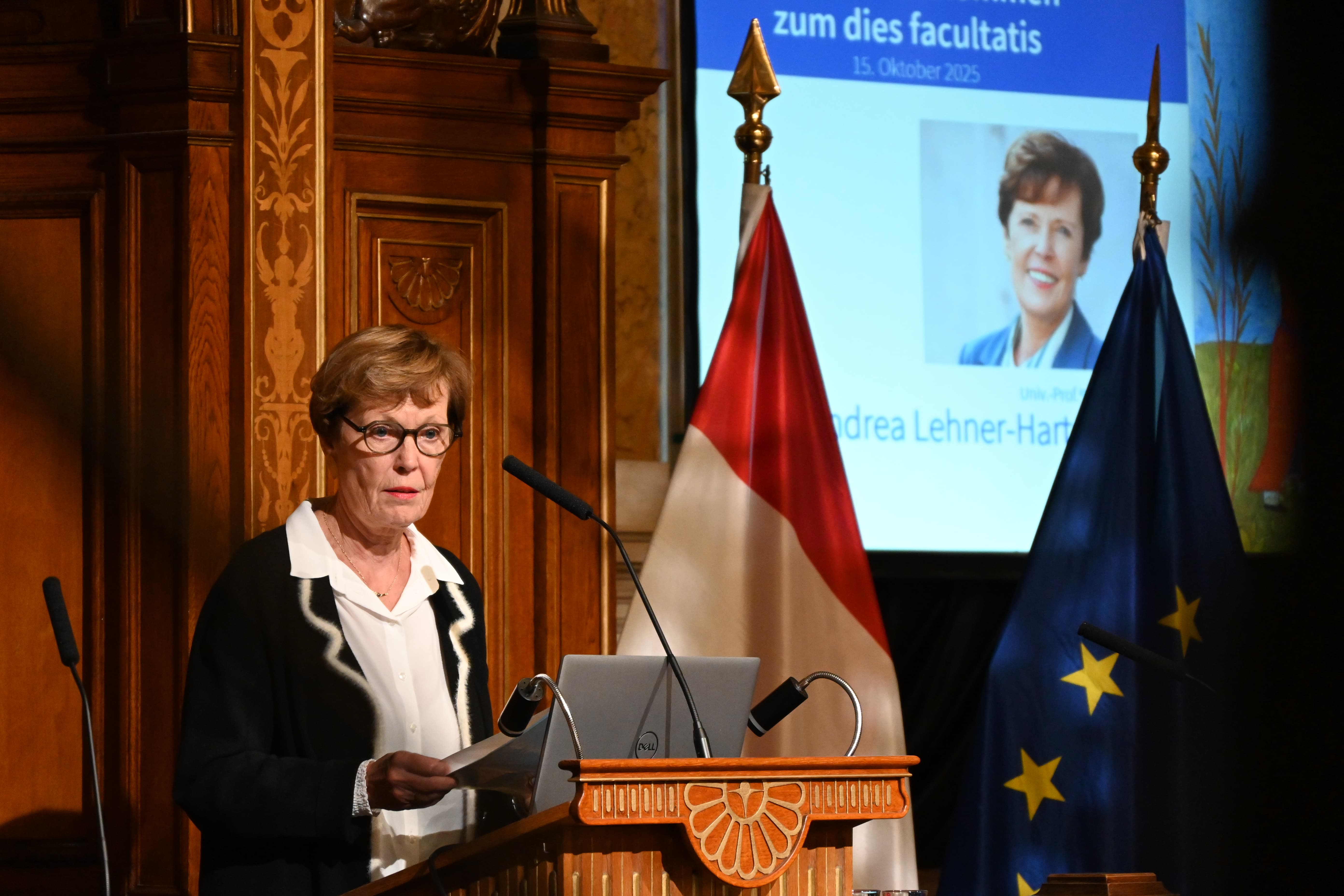 Begrüßt wurden die Studierenden und Lehrenden von Dekanin Andrea Lehner-Hartmann und Vizerektorin Christa Schnabl. Schnabl verwies in ihren Begrüßungsworten auf das neueste THE-Ranking ("Times Higher Education Ranking"), bei dem die Universität Wien heuer erstmals unter den Top 100-Universitäten weltweit gelandet ist: Eine Top-Position, zu der auch die Theologie und die Religionsforschung beigetragen habe, so Schnabl.