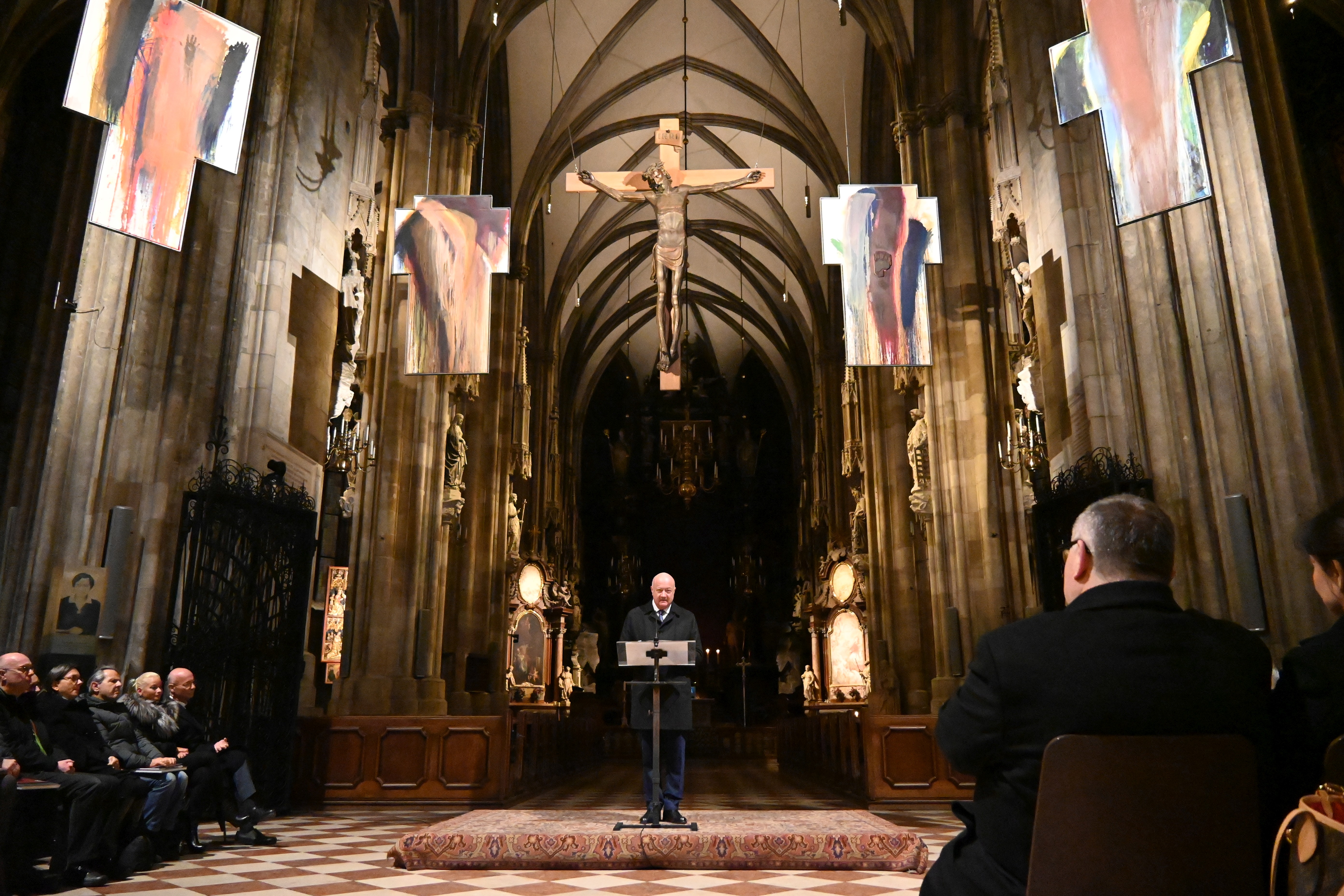 Auch wenn sich Rainer stets gegen religiöse Vereinnahmung gewehrt habe, "behaupte ich: Seine Kreuzarbeiten gehören nicht nur ins Museum, sondern auch den Sakralraum und jetzt in der Fastenzeit auch in den Stephansdom. Wir brauchen seine Kreuzbilder, denn sie haben uns viel zu sagen", betonte der Wiener Erzbischof Josef Grünwidl in seiner Ansprache. Die Stephansdom-Besucher sollten durch die Betrachtung und Auseinandersetzung mit Rainers Kreuzen "verändert werden: nachdenklicher und aufmerksamer für das Kreuz, wachsamer im Blick auf das Leid und den Tod, gestärkt in der Solidarität mit Leidenden, gefestigt in österlicher Hoffnung", so Grünwidl. Von der Kunst bleibe letztlich nur die Veränderung ihrer Betrachter, zitierte er einen Ausspruch Robert Musils. Um Veränderung gehe es auch in der Fastenzeit.