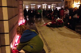 Wir sehen, dass von den Tätern, die sich ihrer Verbrechen noch stolz gerühmt haben, niemand je zur Verantwortung gezogen wurde. Wir sehen, dass heute in Salzburg die Stolpersteine – zum wiederholten Male - beschmiert werden, wir sehen, dass es Neonazismus in unserem Land gibt, unter jungen Menschen, wir sehen, dass Politiker in hohen Funktionen der Republik an der Relativierung des Verbotsgesetzes schrammen, weil es sich "ein bisschen mit der Meinungsfreiheit spießt". Hans Magnus Enzensberger schreibt: "Es soll welche geben, die es nicht mehr hören können. Der eine oder der andre bestreitet es einfach. Die meisten glauben, es sei vorbei. Nur selten sagt eine schwache Stimme einem ins Ohr, daß es kein Ende nimmt." Lasst uns nicht aufhören, wachsam hinzusehen!