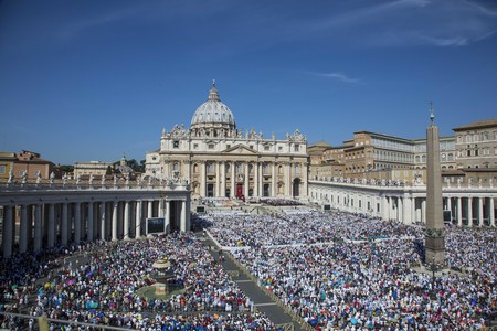 Nach der Heiligsprechung lud Franziskus 1.500 Obdachlose und Arme aus ganz Italien zum Mittagessen in den Vatikan. 250 Mutter-Teresa-Schwestern servieren den Gästen im Vorraum der Audienzhalle Pizza Napoletana. Unterstützt werden sie von 50 Angehörigen des männlichen Ordenszweigs.