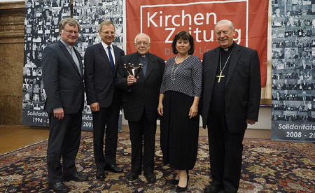 Der Linzer Altbischof Maximilian Aichern ist am Montag mit dem Solidaritätspreis der Linzer "KirchenZeitung" für sein Lebenswerk ausgezeichnet worden. Aichern ist damit einer von zehn Geehrten, denen am Montag die mit insgesamt 20.000 Euro dotierte Auszeichnung im Linzer Landhaus verliehen wurde. Die Preise übergaben der Linzer Diözesanbischof Manfred Scheuer, Landeshauptmann Thomas Stelzer und Soziallandesrätin Birgit Gerstorfer. Bereits zum 24. Mal ehrte die Kirchenzeitung damit soziales Engagement - und das in den Kategorien Einzelpersonen, Gruppen, Jugend und Lebenswerk.