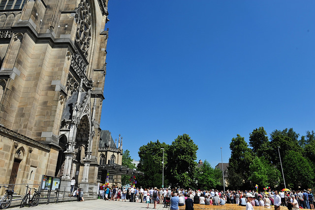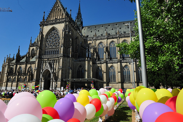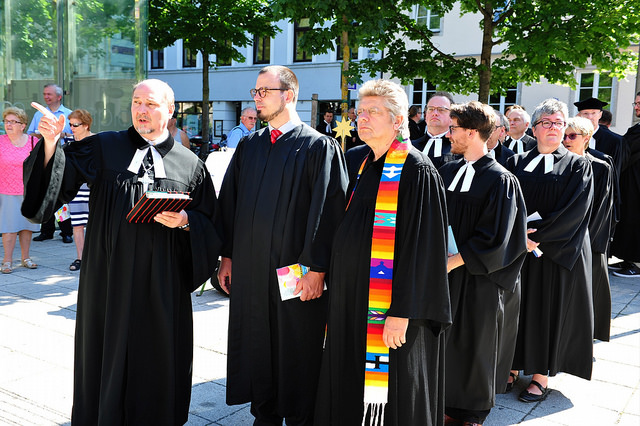Der Kirchentag am Donnerstag in Linz stand ganz im Zeichen von "500 Jahre Reformation". Etwa 300 Mitarbeiter trugen als Mitwirkende und Helfer zum Gelingen des Festes bei, unter ihnen ein Team aus syrischen und iranischen Flüchtlingen. Ein Bogen wurde von der Martin-Luther-Kirche über den Linzer Domplatz bis hin zum Landhaus gespannt; alle drei sind geschichtsträchtige Orte.
