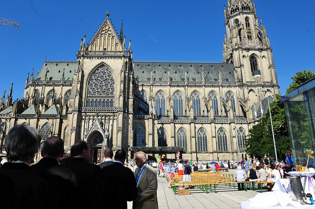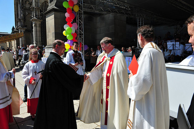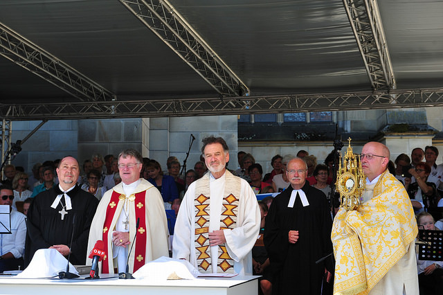 Nach gemeinsamen Gesängen, Texten und Gebeten brachten Scheuer und Lehner in kurzen Ansprachen ihre Freude über das ökumenische Miteinander zum Ausdruck. Lehner wies auf den Mut hin, ein Doppelfest zu gestalten: "Bischof Scheuer und ich hätten es uns heute einfacher machen können - jede Kirche feiert für sich, im eigenen 'Stall'. Aber mit dem Braven und Gewohnten werden wir nicht weiterkommen in der Ökumene." Katholiken und Lutheraner seien "einander Grund zur Dankbarkeit und Gehilfen der Freude - wir sind einander gegeben, um voneinander zu lernen".