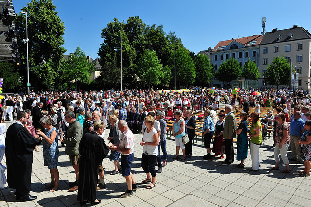 In Linz hat am Donnerstag die "vierte Station" der Fronleichnamsprozession zugleich mit dem Schluss-Segen des evangelischen Kirchentags-Gottesdienstes geendet, und beide Feiern mündeten in einen Ökumene-Event auf dem Domplatz. Er stand unter dem Motto: "Wir tragen die Botschaft Jesu - sein Evangelium - in die Welt". Mit den beiden christlichen Kirchen feierten auch Landeshauptmann Thomas Stelzer, Altlandeshauptmann Josef Pühringer und Bürgermeister Klaus Luger.
