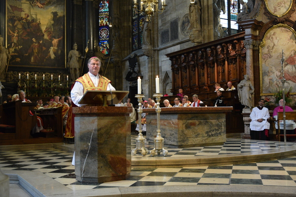 Papst Franziskus hat binnen kurzer Zeit die Wahrnehmung der katholischen Kirche verändert und mit Reformschritten eine "Bewegung nach vorn" in Gang gesetzt: Diese Zwischenbilanz des Pontifikats hat der Linzer Diözesanbischof Manfred Scheuer am Donnerstagabend bei einer Predigt im Wiener Stephansdom gezogen. Rahmen bildete ein Gottesdienst zum Kirchenfest Peter und Paul, an dem auch Kardinal Christoph Schönborn und der Apostolische Nuntius Peter Stephan Zurbriggen teilnahmen. Die Messe stand im besonderen Zeichen des Dankes für die bisher vier Amtsjahre von Papst Franziskus.