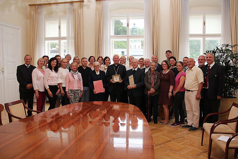 An der Begegnung im Bischofshaus nahmen auch Prälat Matthäus Appesbacher, einer der Gründerväter der Partnerschaft, und Finanzkammerdirektor Josef Lidicky teil. Litauische Lieder zeugten von der Freude an der Begegnung zwischen den Salzburgern und der Delegation aus Telsiai, die noch bis 28. Juli in der Mozartstadt bleibt.