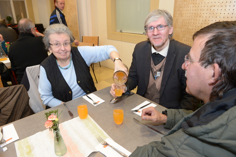 In zahlreichen Pfarren und kirchlichen Einrichtungen finden an diesem Sonntag, 19. November, Aktionen aus Anlass des ersten, von Papst Franziskus ausgerufenen "Welttages der Armen" statt. Einen ersten Akzent setzte am Samstag, 18. November, bereits die Wiener Dompfarre: Dort fanden sich auf Einladung von Dompfarrer Toni Faber und dem "Rosenkranz Sühnekreuzzug" (RSK) rund 250 Bedürftige zu einem Festessen in den Räumen des Curhauses am Stephansplatz ein. Ähnliche Festessen für Bedürftige veranstaltet die Dompfarre bereits seit 20 Jahren - heuer steht das Essen jedoch unter einem doppelten "guten Stern": Als sichtbares Zeichen des Welttages gegen Armut und als Geburtstagsfest für den Geistlichen Leiter des RSK, P. Benno Mikocki, der heute seinen 85. Geburtstag feiern konnte.
