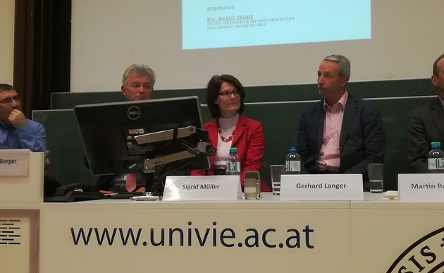 Die unterstützende Wirkung von Religion bei der Ausbildung einer gefestigten Identität in einer pluralen Gesellschaft haben am Mittwoch an der Universität Wien Vertreter der katholischen und evangelischen Kirche, des Judentums und des Islams hervorgehoben. Der Mensch stehe vor der Herausforderung, aus verschieden geprägten "Einzelteilen" eine stimmige Persönlichkeit zu entwickeln und "da hilft die Religion schon, denn wir glauben, dass Gott jeden einzelnen Menschen liebt so wie er ist", erläuterte die Dekanin der katholisch-theologischen Fakultät, Sigrid Müller, bei einer Podiumsdiskussion zum Thema "Religionen in einer pluralen Gesellschaft". Religion schaffe einen "geschützten Rahmen", in dem sich jeder Einzelne ohne Druck entwickeln könne.