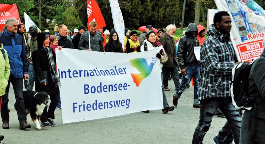 Rund 100 Organisationen aus Österreich, Deutschland und der Schweiz laden zum Bodensee-Friedensweg 2018 ein, darunter die katholische Friedensbewegung Pax Christi, der Internationale Versöhnungsbund, der Schweizer Friedensrat, Juso-Gruppierungen und Gewerkschaften.