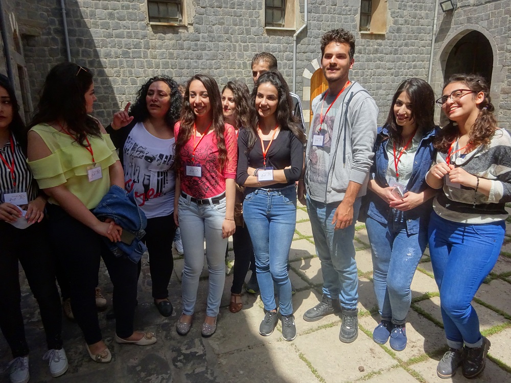 Im Zentrum von Homs liegt das Kloster der Jesuiten, das wir als nächstes besuchen. P. Magdi führt uns durch die Anlage, in der buntes Treiben herrscht. Rund 30 Jugendliche aus Homs absolvieren gerade einen Kurs, wie sie Kriegstraumatisierten helfen können. In einem anderen Raum treffen sich Kriegsversehrte und deren Angehörige zu Workshops und Beratungsgesprächen. Das Angebot wird von Christen und Muslimen genützt.